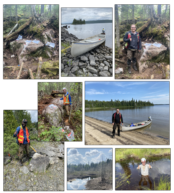 Program was targeting lithium-bearing pegmatites primarily hosted in metasedimentary terrain. Prospecting program utilized all-terrain vehicles on trail system and small boats on waterways to access remote locations on the property. Program was successful in the delination of multiple lithium-bearing boulders and in-situ pegmatites.